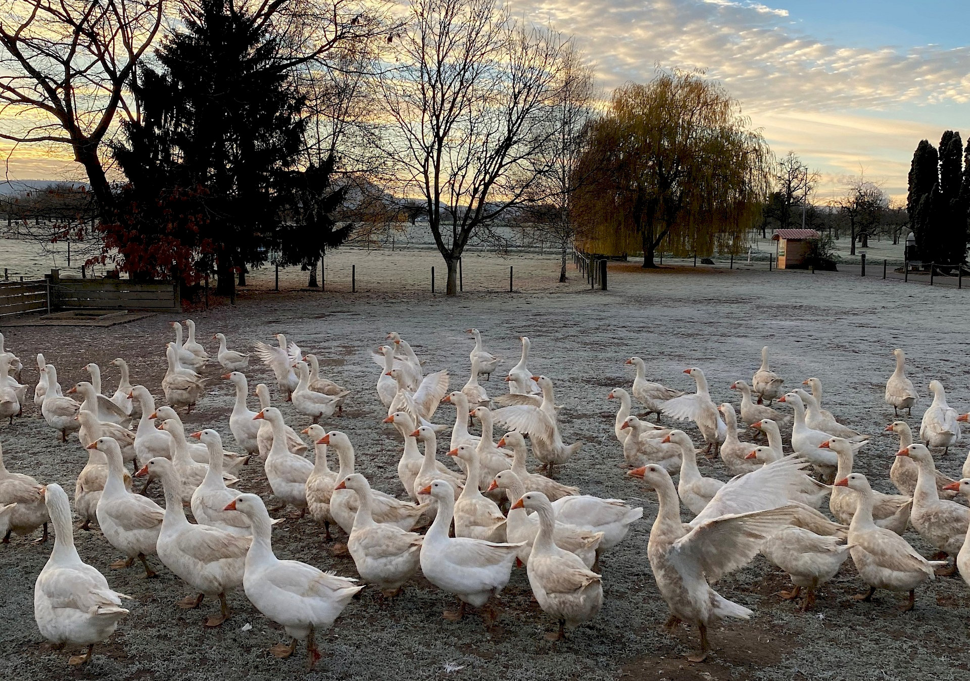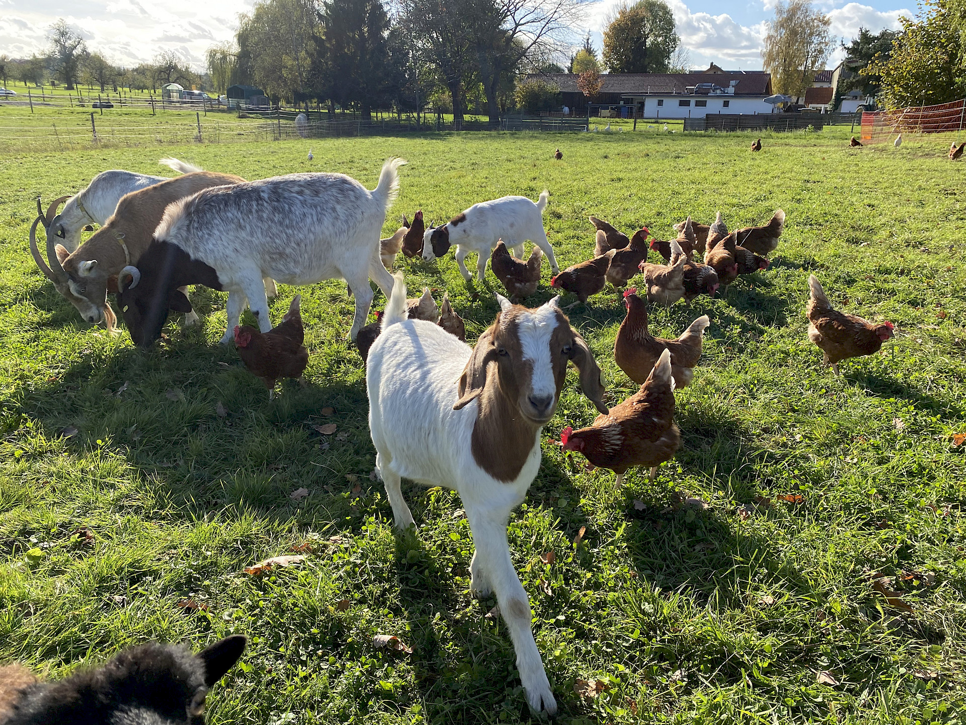Auf unserem Bauernhof werden Hühner in Freilandhaltung sowie in Bodenhaltung mit Wintergarten in kontrollierter, alternativer Tierhaltung und im Verbund der Qualitätssicherung Baden Württemberg gehalten. Desweiteren sind auf unserem Hof Mastschweine sowie Weidegänse auf Martini und Weihnachten zuhause.